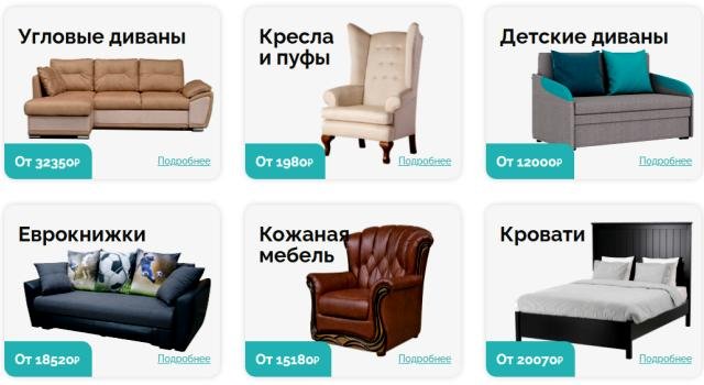 В магазине представлен большой выбор — более тысячи товаров, в том числе диваны различных моделей и цветов. На продукцию нашего интернет-магазина распространяется гарантия от 1 года до 2 лет, и каждый товар проходит проверку по ГОСТу. У нас есть мебель для разных ценовых категорий, а для производства мы используем только экологически чистые материалы и надежную фурнитуру!