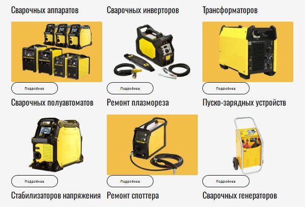 • Ремонта сварочных аппаратов различных марок.