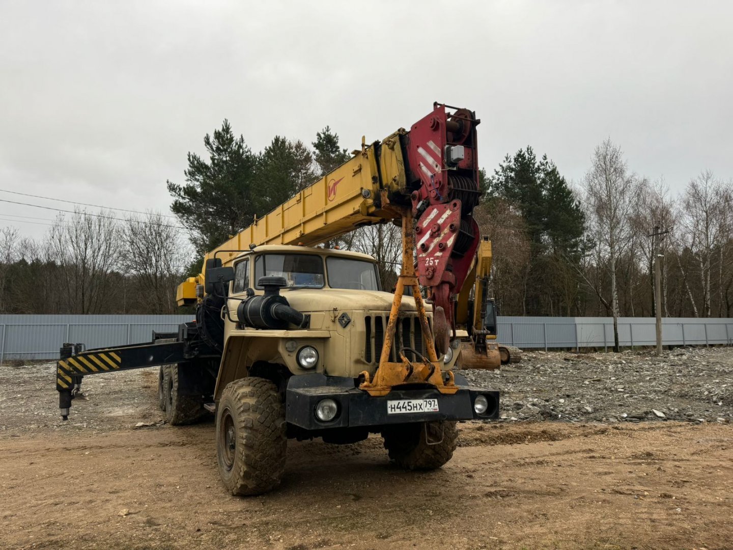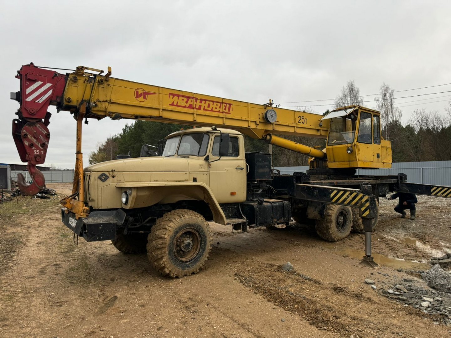Ивановец КС-45717-1 грузоподъёмностью до 25 тонн (при максимальном вылете — 1,28 тонны). Длина стрелы составляет 21 метр, с возможностью телеcкопирования от 9 до 15 метров, а максимальная высота подъема — 21,3 метра. Гусёк длиной 9 метров.